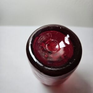 Condition: good, no chips or cracks. There is a scratch on one side (not super visible) and some dirt inside on the bottom (also not really visible due to the color of the glass)