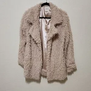 Thread & Supply Gold Cream Teddy Jacket Oversized Fuzzy