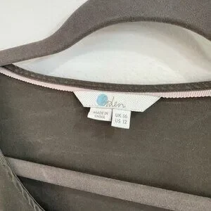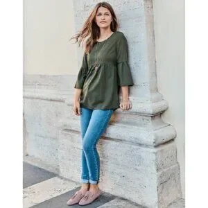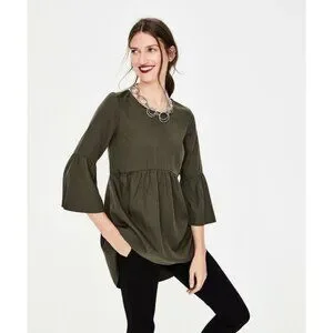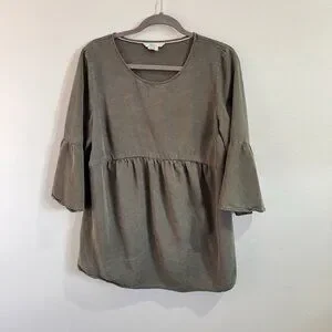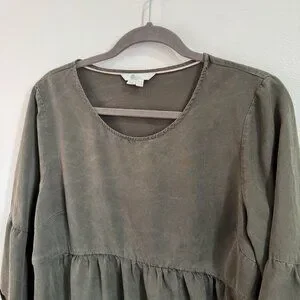 Boden Shirt 12 Curved Seam Tunic Olive Green Mineral Wash Bell Sleeves Boho