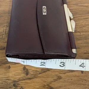 Vtg 80/90's Gary's Leather Brown Bifold Wallet Genuine Calf Leather Kiss Lock