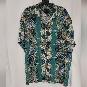 Hawaiian Reserve Collection Men's EUC Teal Hawaiian Button Down Shirt Size XL