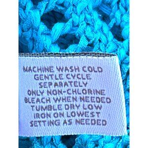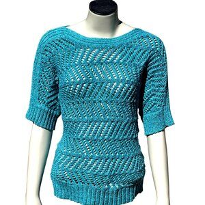 Chicos Halo Open Knit Riviera Pullover Aqua Blue Short Sleeve Sweater Top Size 0