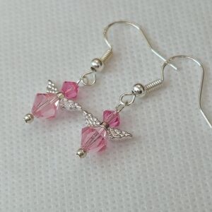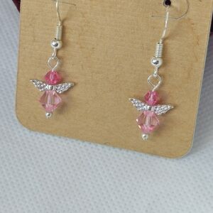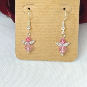 Handmade Pink AB Crystal Guardian Angel Sterling Silver Earrings Handmade by me!