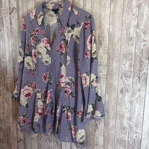Torrid purple floral fit & flare blouse with bell sleeves. Size 1. (1X)