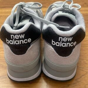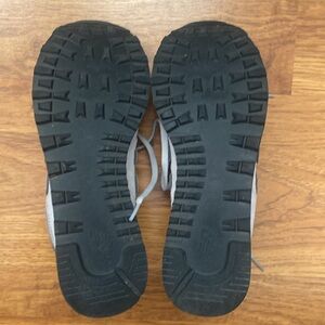 Founded in Boston nearly a century ago, New Balance has long…been known for real-deal running shoes with graphic appeal. Designed in 1988, their classic 574 suede sneakers combine a foot cradling inner sole and old school style. Gently worn, front part of the shoe has a crease due to the nature of the material. (See photos).