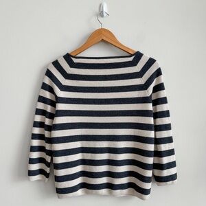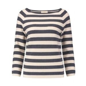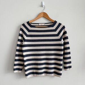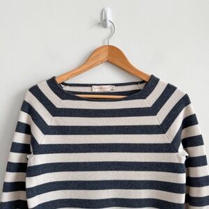 🏷️ SOLD • TORY BURCH • Kim Merino Wool Striped Sweater in Birch/Charcoal • Small