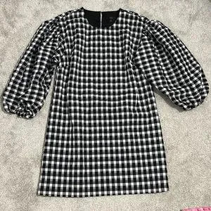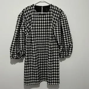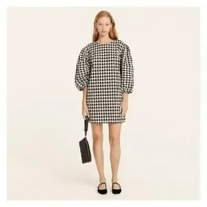 J. Crew Puff Sleeve Mini Dress in Textured Plaid Medium NWT