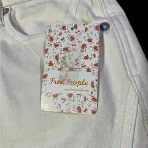 FREE PEOPLE NWT Worn White Short Ripped Button fly Jeans Skirt Size 25