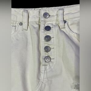 FREE PEOPLE NWT Worn White Short Ripped Button Fly Jeans Skirt Size 25