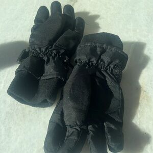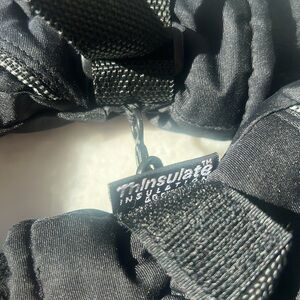 THINSULATE women’s M gloves, warmly lined. Velcro wrist adjustment. Clasp. All black. 100% Nylon exterior waterproof