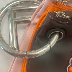 fendi triplette clutch bag leather Black Pink Orange Used Women
