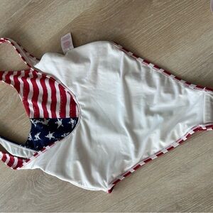 Featuring a vibrant red, white, and blue design, it's perfect for pool days and beach outings.