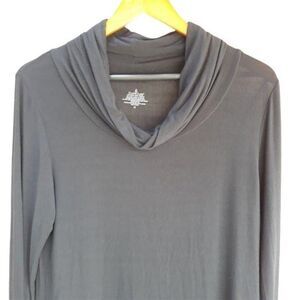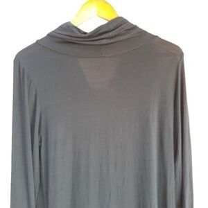Cuddl Duds Jersey Knit Draped Scoop Neck Long Sleeve Tunic Shirt Dress Blk Sz M