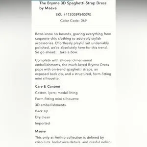 Fully lined, straps, super fun and flattering exclusive and sold out @anthro dress with back zipper; 3D bows all over! Very eye-catching look! Smoke free home. Size 4 and 8 available. Please see closet for similar dress, sz 4, in ivory with blue bows.