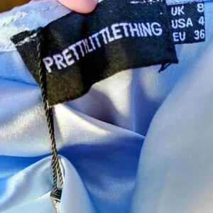Pretty Little Thing dusty blue satin cowl neck midi dress