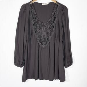 ANTHROPOLOGIE HAZEL Women’s Open Crochet Empire Waist Brown Tunic