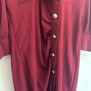 SHEIN Burgundy Shawl Collar Split Hem Button Dress Size 1XL