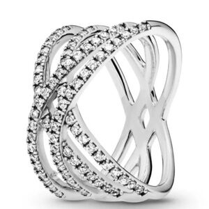 Stunning sterling silver crisscross ring with sparkling cubic zirconia. A rare, retired design—perfect for everyday wear or stacking!