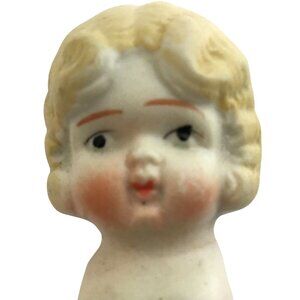 These vintage bisque Kewpie dolls, marked "Made in Japan," feature jointed arms. It showcases delicate painted details and charming craftsmanship.