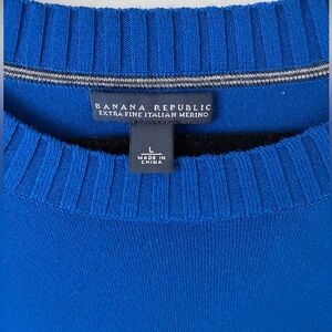 Stylish blue merino wool sweater by Banana Republic. Perfect for any occasion. Lightweight like new