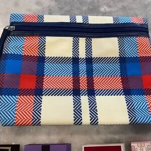 Set includes White/Red/Blue plaid Make-up Case ~ soft flannel-like fabric with water resistant lining.