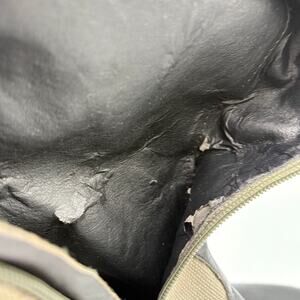 Both the corduroy and leather feature light distressing. The only actual wear is shown in the interior of the boot as the inside liner is not real leather.