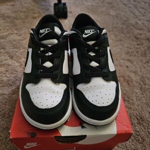 Kids Black and White Nike low Dunks size 9