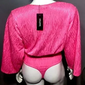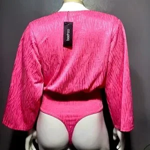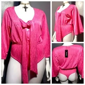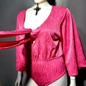🔥NEW $49 SILKY SEXY PINK Wrap BODYSUIT SIZE 10