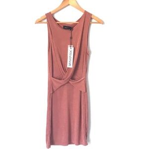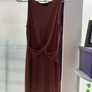 This elegant rust sleeveless dress is perfect for any occasion. Its draped design adds a touch of sophistication to your wardrobe.