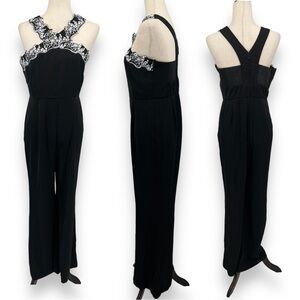 Anthropologie Foxiedox Sarah Floral Embroidered Wide Leg Halter Jumpsuit Medium