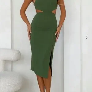 Girl, be seen in a gorgeous dress. The HELLO MOLLY Excellence In Style Midi Dress features flirty cutouts to the waist with a split to the skirt. Style with heels for all the attention.