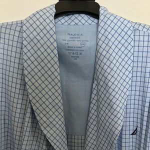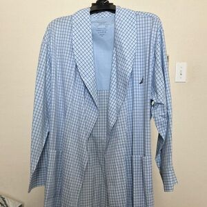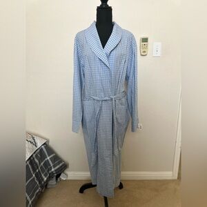 Nautica Vintage Light Blue Plaid Pockets Cotton robe, Large checkered. NWT