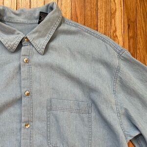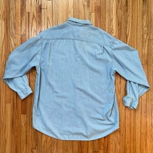 IZOD Jeans brand. Size XL. Light chambray button-down shirt. 100% Cotton. Actual Measurements: shoulder to shoulder 21”, pit to pit 24”, length 32”, & arm length 24”.
