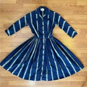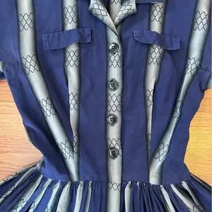 Vintage 1950’s Jonathan Logan Navy and Grey Striped Button Front Dress size XS