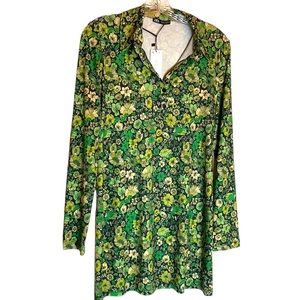 ZARA Floral Tunic Vibrant Green Retro Flower Power Mini Dress SZ S