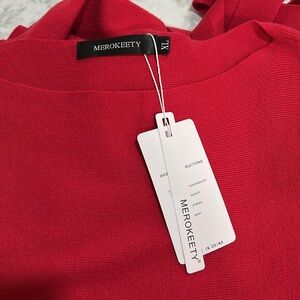 MEROKKETY WOMEN OFF THE SHOULDER RIBBED DRESS WITH TIE LONG SLEEVE RED Sz XL NEW