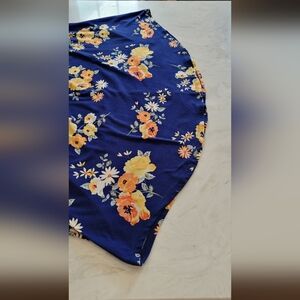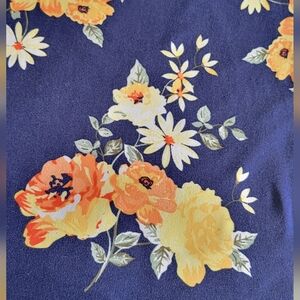navy, orange, yellow, white, green, stretchy, flowy , scoop neck, soft and comfortable dress, 3X. 36 inches long but Scalloped hem. Great pre-owned condition.