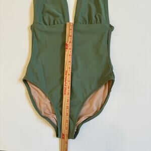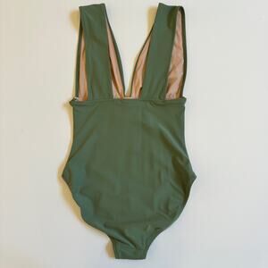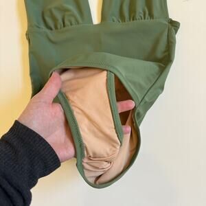 J. Crew V Neck One Piece Bathing Swim Suit Green EUC Medium Spring Break Lined
