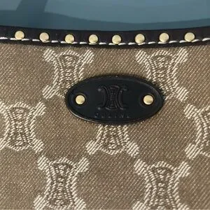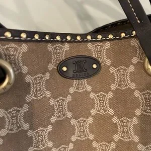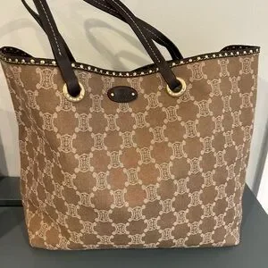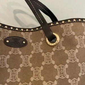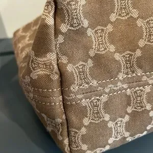 Celine Macadam Canvas Tote in a rare brown color is in excellent used condition.