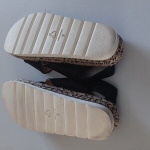 Kanna black leather womens wedge sandals with herringbone design, size 39 (8 1/2