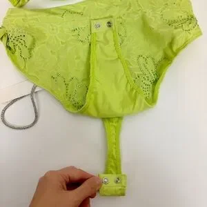 * Top: Bodysuit with gusset snap button closure, thong back and hidden side zipper closure