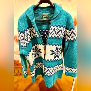 Woolrich Women's 100% Lambs Wool Knit Full Zip Fair Isle Jacket Size XL, Gently used