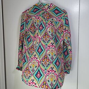 Lilly Pulitzer Boston Crown Jewel Silk Popover Blouse SZ Small Geometric Print