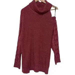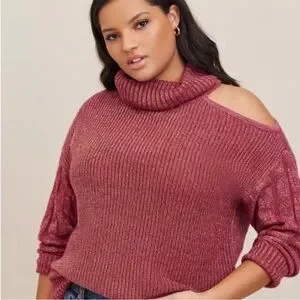 Torrid Maroon Metallic Cable Knit Pullover Cold Shoulder Sweater Size 1X