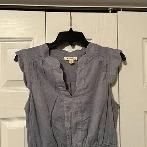 Sleeveless dress by Monteau. Size L. Has pockets. The shell is 100% Cotton and the lining is 100% Polyester. 35 inches from shoulder to hem.