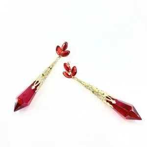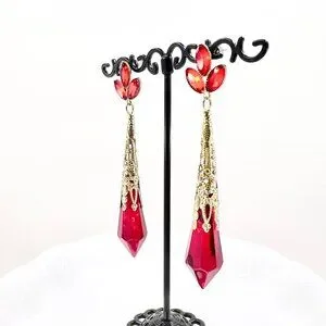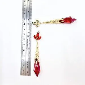 NWT – Charming Charlie – Red Jeweled Drop Glass Dangle Gold Tone 3.5” Earrings