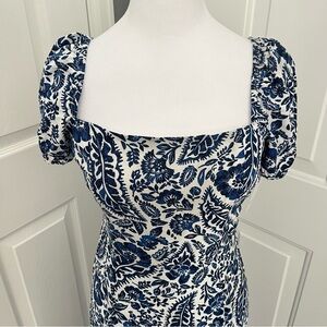 Miami of Francesca’s Square Neck Midi Dress Small Blue Front Slit Quiet Luxury