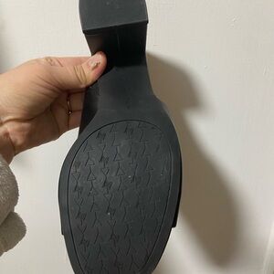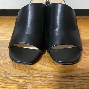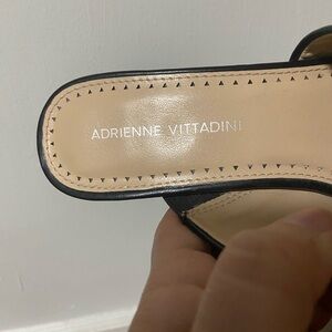 Step out in style with these sleek black slide sandals from Adrienne Vittadini. Perfect for any occasion, these shoes offer both comfort and elegance. Worn once!!!