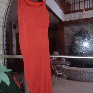 Sofia Vergara Women's Summer Dress Large (12-14) Reddish Orange Shell 93% Vicose 7% Spandex Lining 100% Polyester Gathered on one side Asymmetrical hem Probably falls below knee Sleeveless Very Pretty Lined in the top Approximate Measurements: Pit to Pit 17" Length 40"
