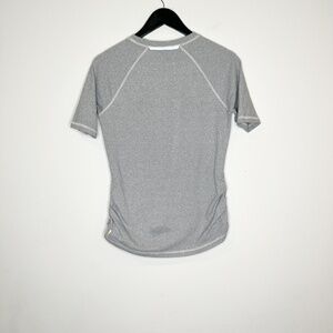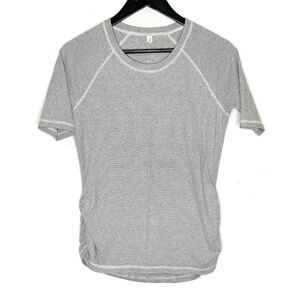 Lucy Activewear Top Short Sleeve Tee Shirt Striped Scrunchie Gray